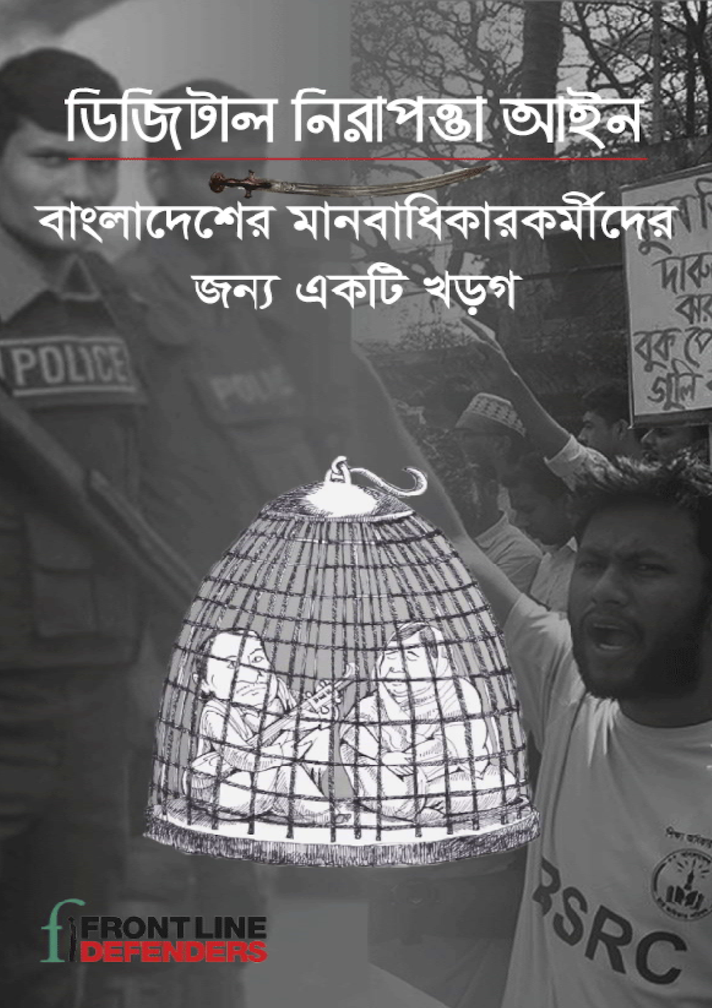 7 February 2022 ‘ডিজিটাল নিরাপত্তা আইন: বাংলাদেশের মানবাধিকারকর্মীদের জন্য একটি খড়গ’ ফ্রন্টলাইন ডিফেন্ডার্সের তথ্যানুসন্ধান প্রতিবেদন প্রকাশ Rights #Freedom of Expression #Labour Rights / Trade Union #Student Rights / Education Violations #Arrest / Detention / Imprisonment #Defamation #Judicial Harassment Location #Bangladesh #Region: Asia Pacific